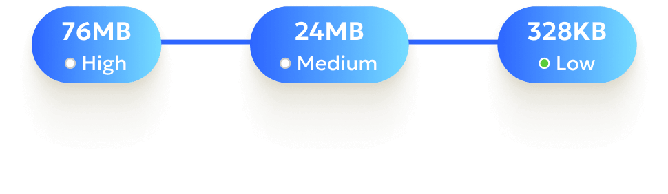 Reduce large PDFs by up to 90%, bringing multi-megabyte files down to a few MB or even KB, ready for email, WhatsApp, or uploads.